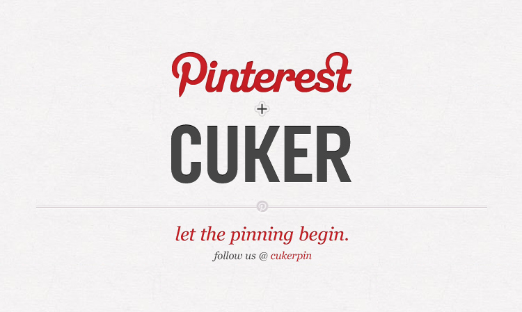Hot off the press – Cuker has an interest in Pinterest. The virtual pinboard for social image sharing is rapidly growing with 11.7 million registered users and counting, and we’ve joined in on all the excitement. Follow us at Cukerpin to view our client work, follow our favorite tech tools and digital design work, and gain a behind the scenes look at the Cuker studio.