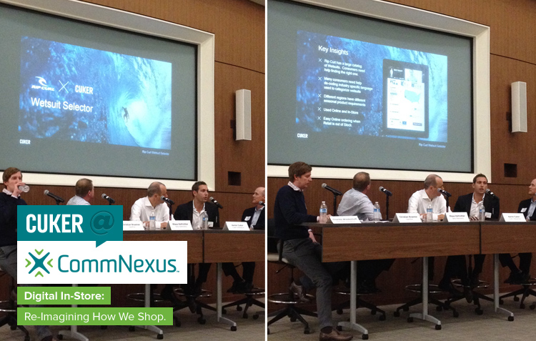 Many progressive retailers are engaging consumers through highly personalized experiences. Aaron also discussed the Wetsuit Selector that the Cuker team built for Rip Curl, which recommends the perfect wetsuit for each user based on gender, zip preference, height, weight, and other factors. The Wetsuit Selector was also integrated into Rip Curl’s tablet app and mobile-optimized website in order to introduce this digital tool in stores.