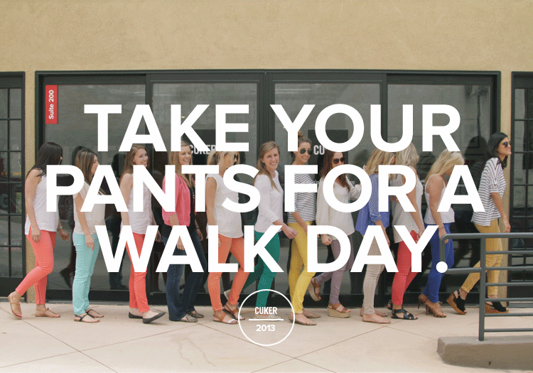 Take Your Pants for a Walk DayThese pants were made for walkin'! Happy Take Your Pants for a Walk Day from the ladies at Cuker!Published on July 27, 2013.